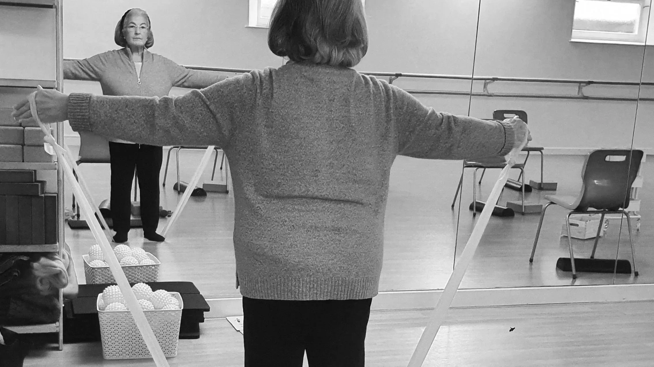From gentle warm-up exercises to work using small fitness props such a resistance bands, blocks, balls and straps, participants are guided through a diverse range of seated exercises (on a chair), and standing, (at the barre) that engage and challenge both body and mind.